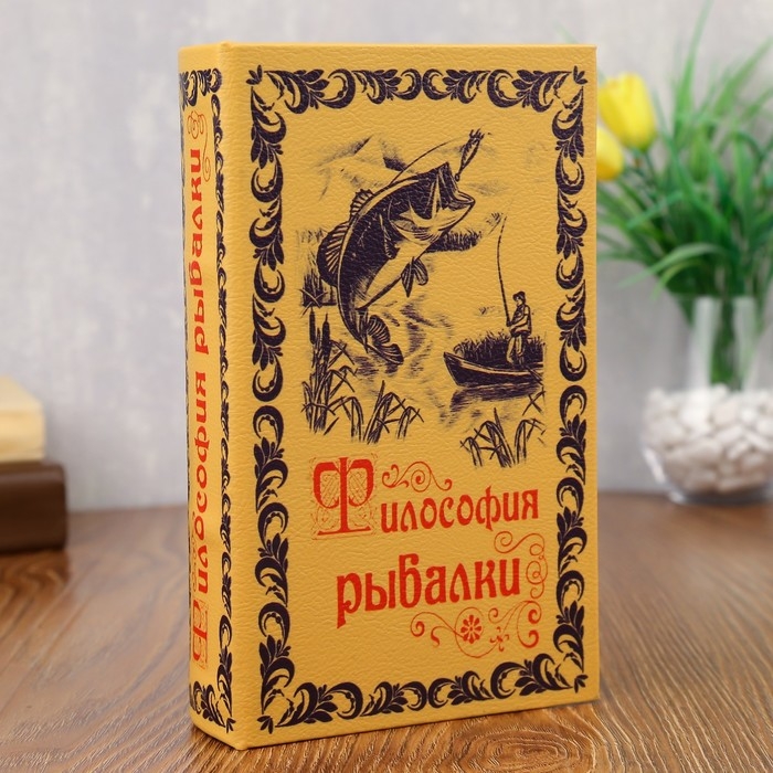 Сейф дерево книга кожа "Философия рыбалки" 21х13х5 см