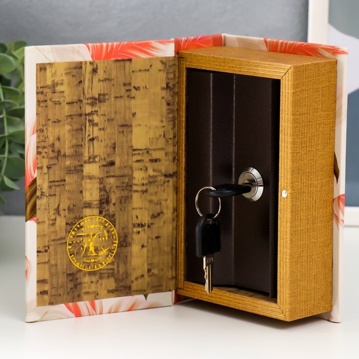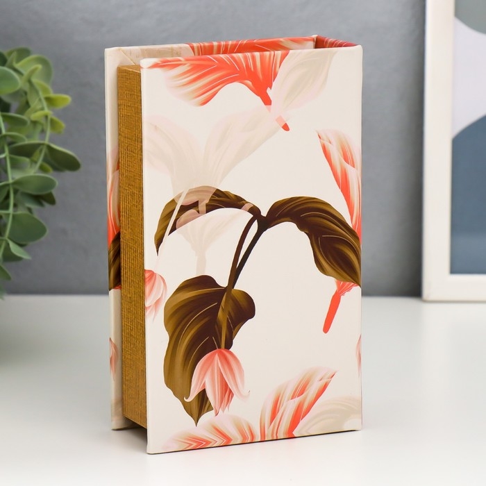 Сейф-книга дерево кожзам "Цветок и листья" 17х11х5 см