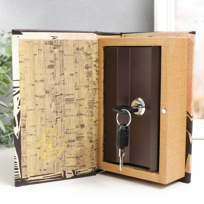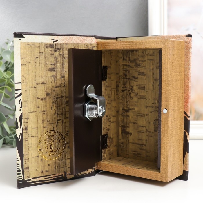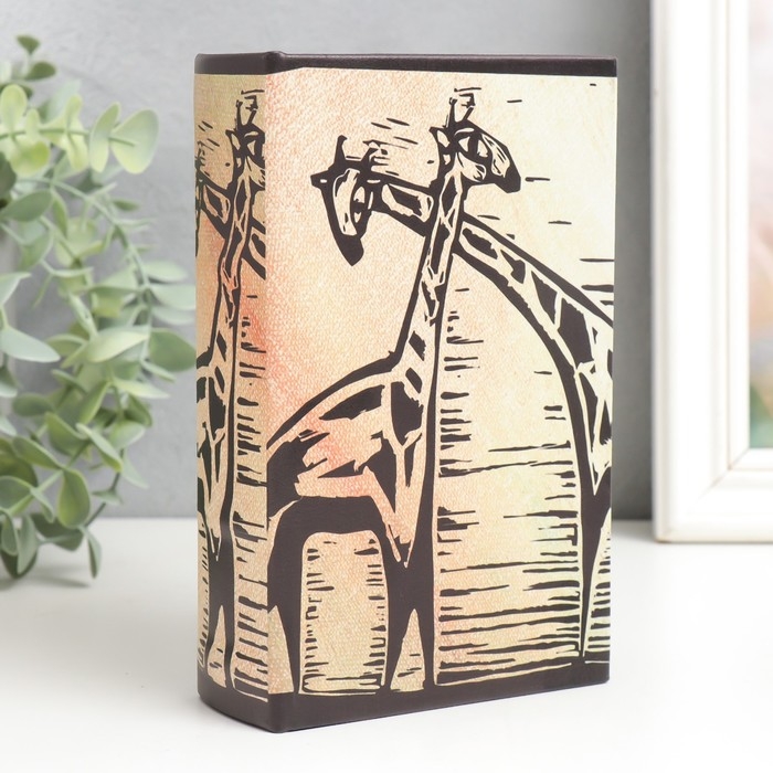 Сейф-книга дерево кожзам "Наскальные рисунки. Жирафы" 17х11х5 см