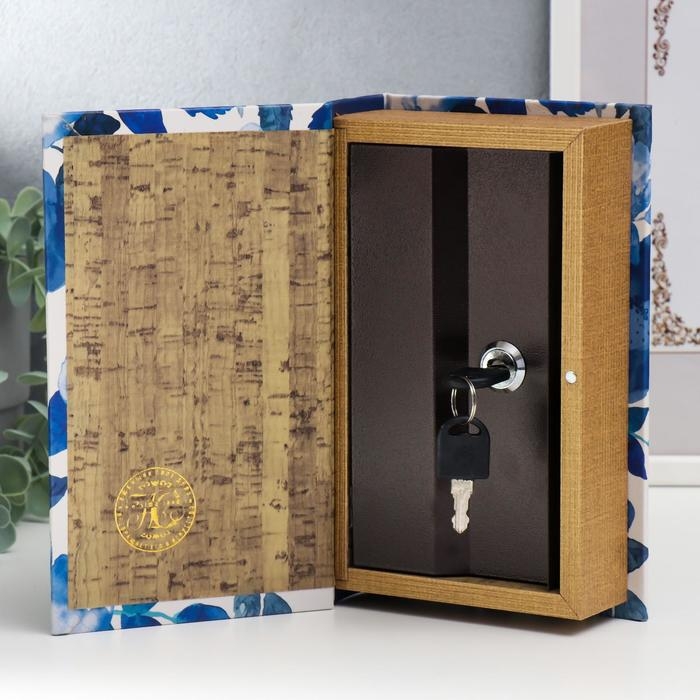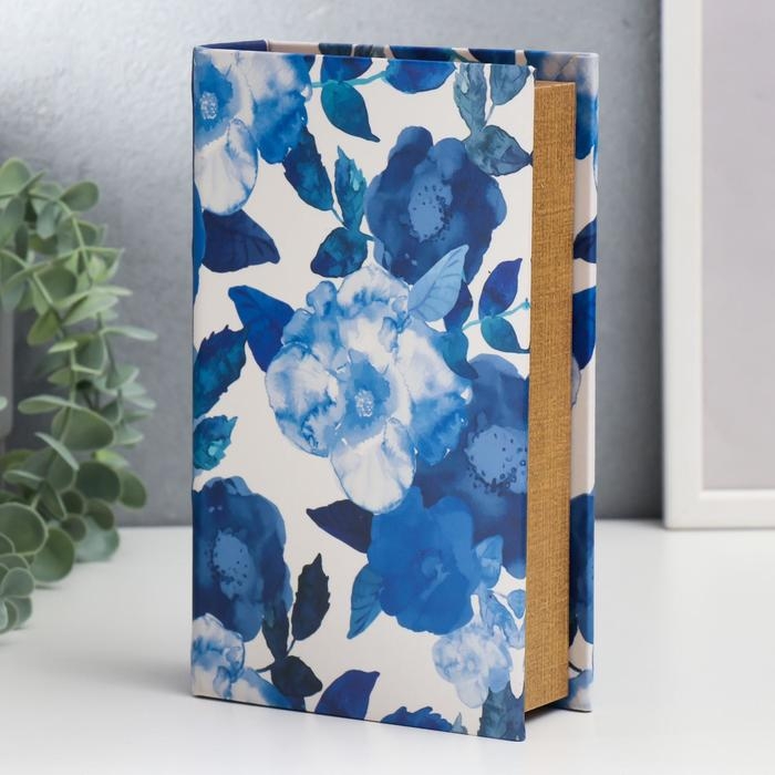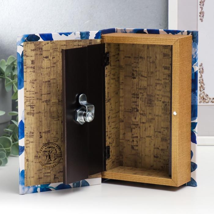 Сейф-книга дерево кожзам "Синие цветы. Акварель" 21х13х5 см