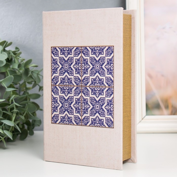 Сейф-книга дерево кожзам "Синие узоры" 21х13х5 см