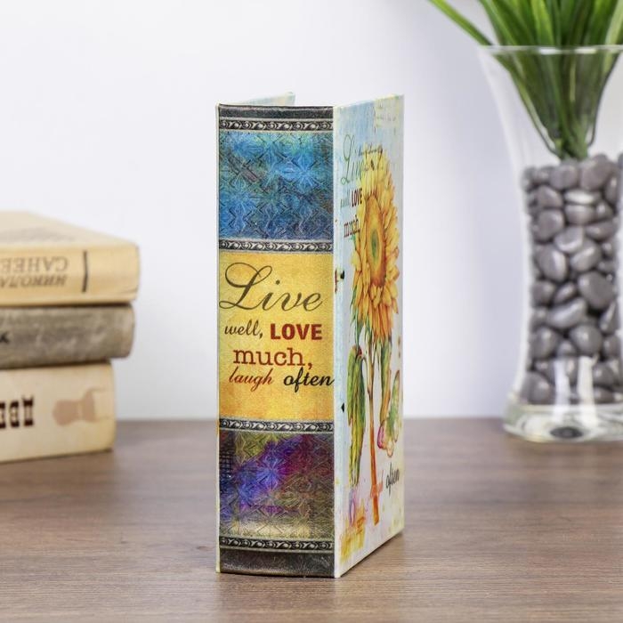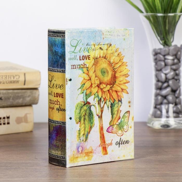 Сейф-книга дерево шёлк "Подсолнух с бабочкой" 17х11х5 см