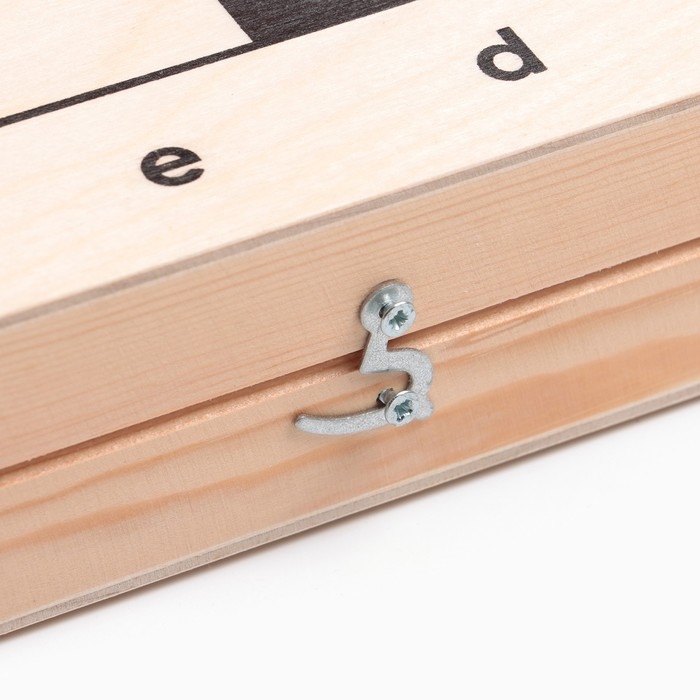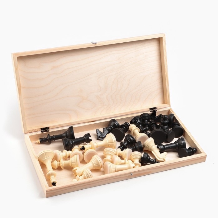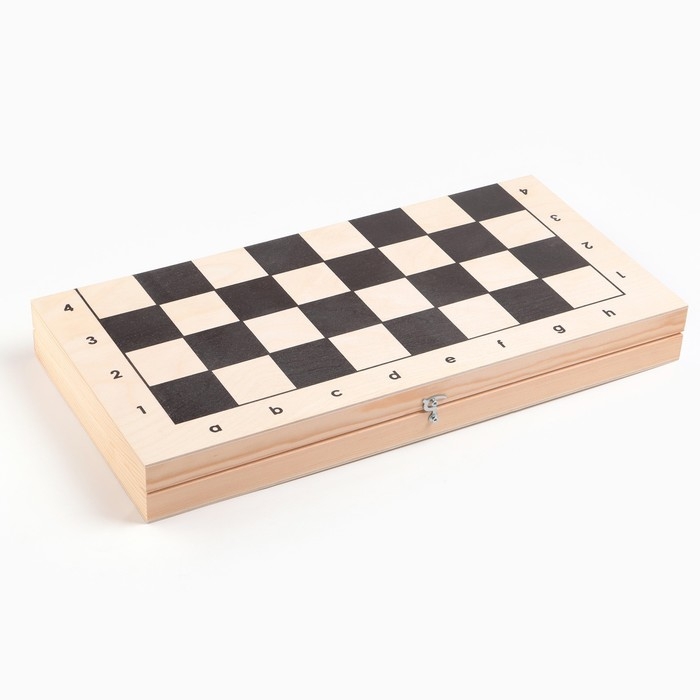 Шахматная деревянная лакированная доска из качественных пиломатериалов: каркас выполнен из сосны, поле - берёзовая фанера. Размер доски в сложенном виде всего 43 х 21.5 см, в разложенном 43 х 43 см. Высота доски в разложенном виде 2.3 см. Доска имеет аккуратную и надежную фурнитуру и вместительный отсек для хранения.