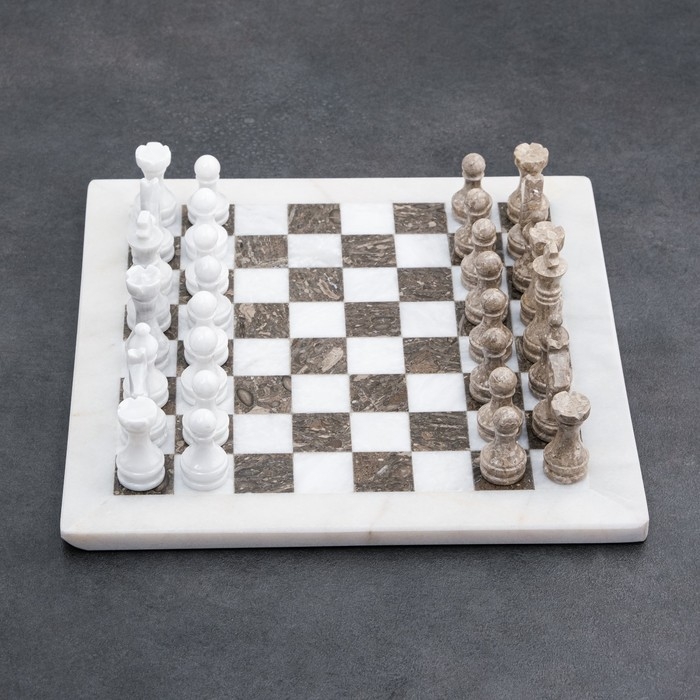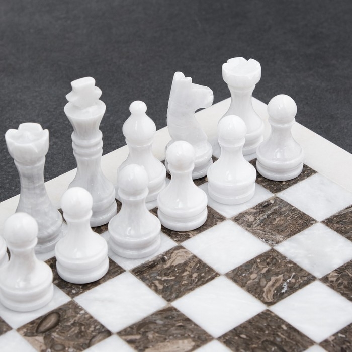 Шахматы «Элит», серый/белый, доска 30х30 см, оникс