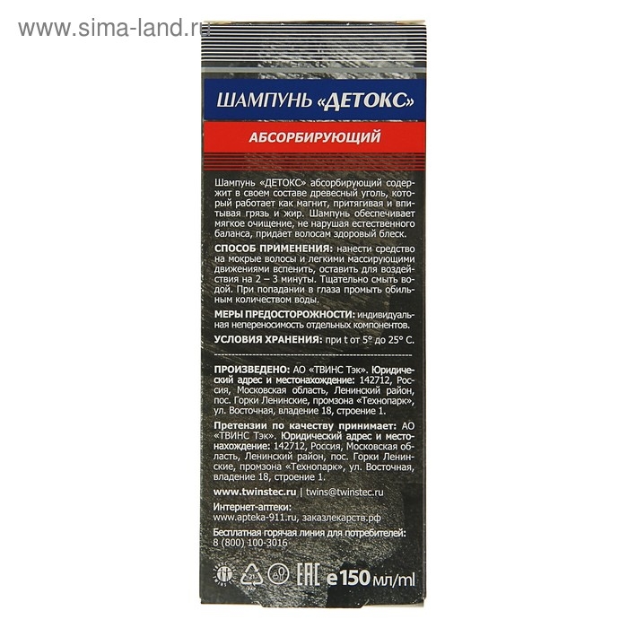 Шампунь 911 "Детокс" абсорбирующий с древесным углем, 150 мл