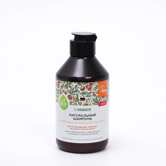 Шампунь бессульфатный SYNERGETIC максимальное питание и восстановление, 250 мл