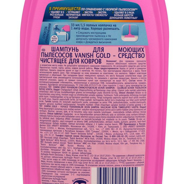 Шампунь для ковров Vanish Gold, для моющих пылесосов, 450 мл