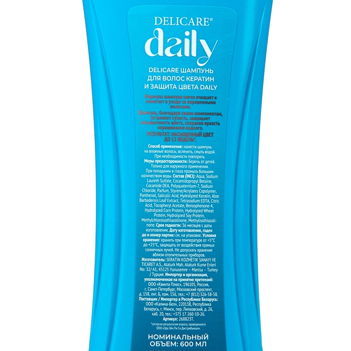 Шампунь для волос Delicare Daily кератин и защита цвета, 600 мл