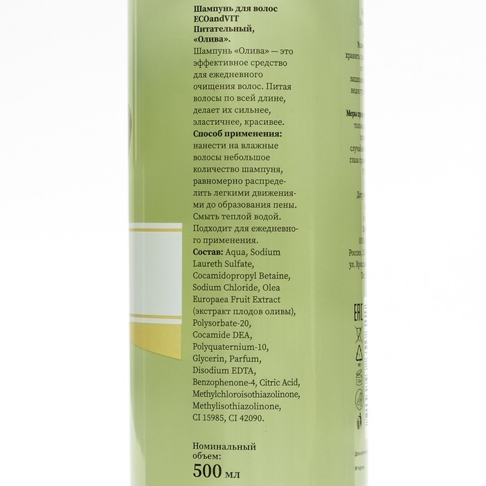 Шампунь для волос питательный ECOandVIT с оливой, 500 мл