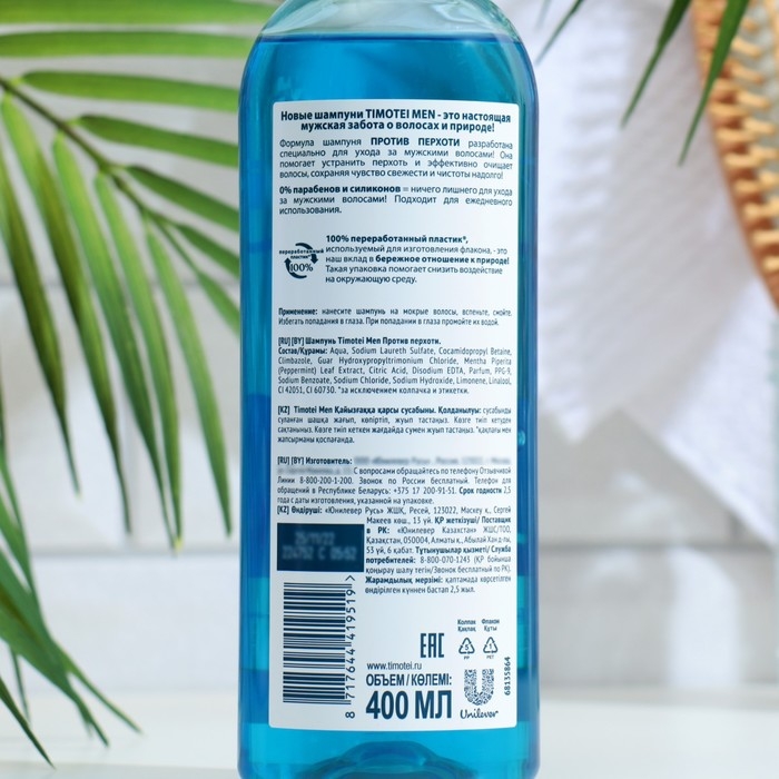 Шампунь мужской Timotei «Против перхоти» содержит инновационный комплекс Botanik-З — специально подобранное сочетание:
