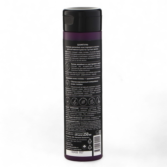 Шампунь "купаж репейно-касторового масла" для активного роста густых волос, 250 мл