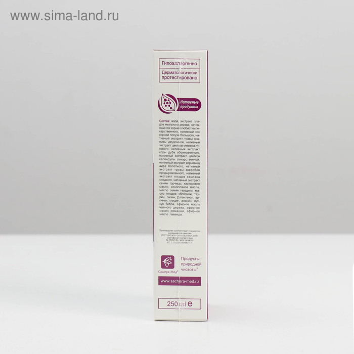 Состав: вода, экстракт плодов мыльного дерева, нативный сок корней любистка лекарственного, нативный сок корней лопуха большого, нативный экстракт травы крапивы двудомной, нативный экстракт цветков клевера лугового, нативный экстракт коры дуба обыкновенного, нативный экстракт цветков календулы лекарственной, нативный экстракт корневищ аира болотного, нативный экстракт травы зверобоя продырявленного, нативный экстракт плодов каштана сладкого, нативный экстракт семян горчицы, касторовое масло, конопляное масло, масло семян гвоздики, масло плодов облепихи, таурин, лизин, Д-пантенол, аргинин, глицин, аланин, мускус бобра, эфирное масло чайного дерева, эфирное масло ромашки, эфирное масло лаванды.