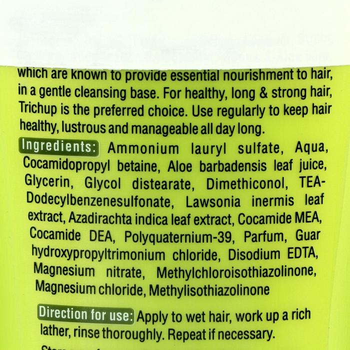Парфюм (Parfum), Хна(lawsonia inermis leaf extract), Ним (azadirachta indica leaf extract), Гуар гидроксипропилтримония хлорид (Guar hydroxypropyltrimonium chloride), Дисодиум ЭДТА (Disodium EDTA), Климбазол (Climbazole), Нитрат магния (Magnesium nitrat), Метилхлоризотиазолинон (Methylchloroisothiazolinone), Магния Хлорид (Magnesium chloride), Метилизотиазолинон (Methylisothiazolinone), dimethiconol, TEA-dodecylbenzenesulfonate, cocamide MEA, magnesium chloride.
