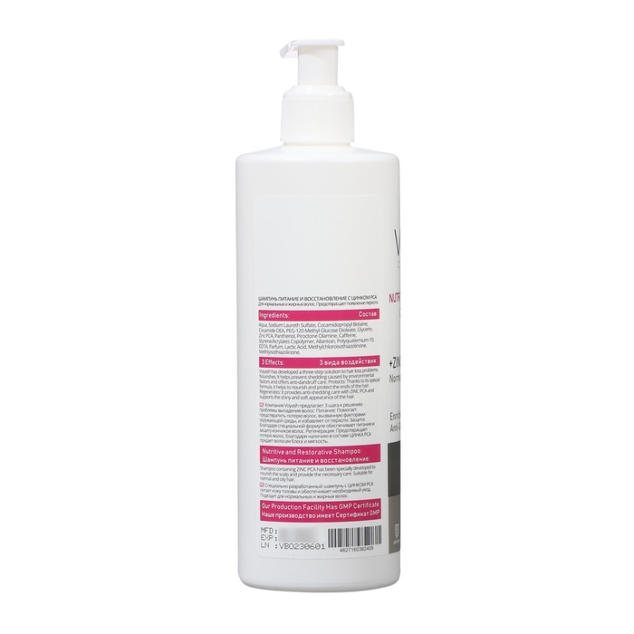 Мягкий очищающий шампунь VOYASH Восстановление и яркость с Витамином Е + Коллагеном , бережно очищает волосы и кожу головы. Благодаря своей богатой формуле, содержащей коллаген и витамин Е – шампунь восстанавливает структуру волос, глубоко питает и насыщает волосы силой, делает волос послушным и мягким, придавая шелковистость и блеск.