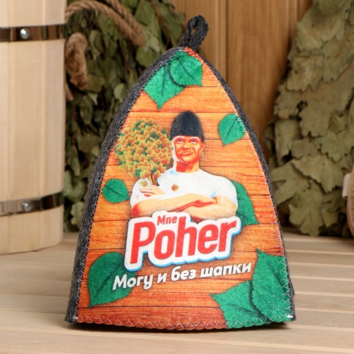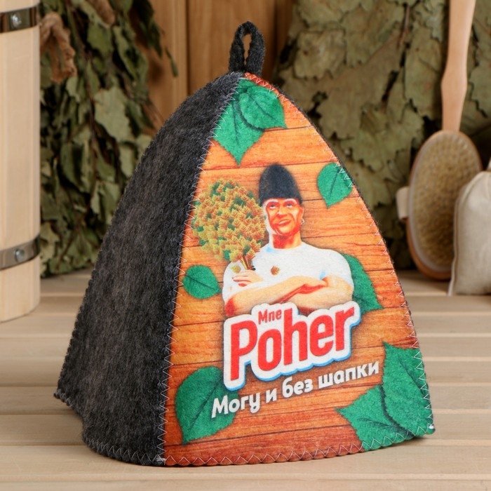 Шапка банная "Классическая" серая с принтом "Могу и без шапки"