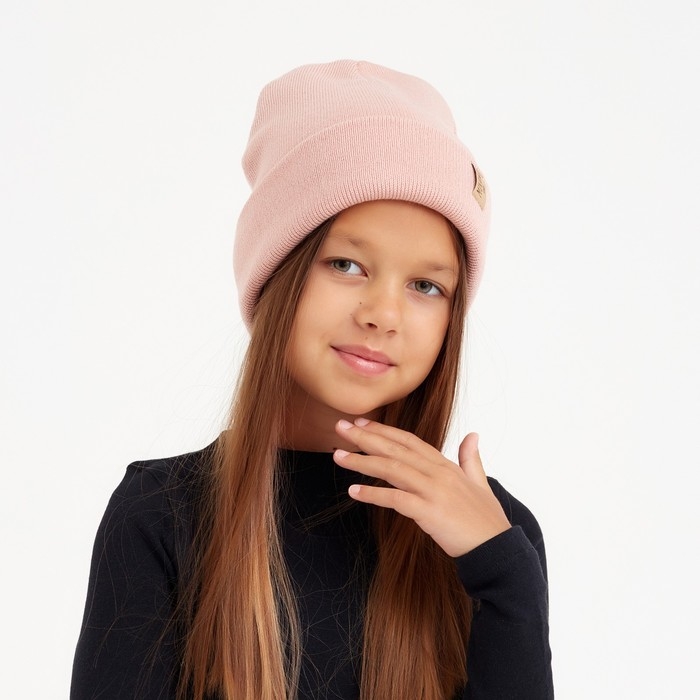 Шапка детская MINAKU с отворотом р-р 52-56, цв.пудровый