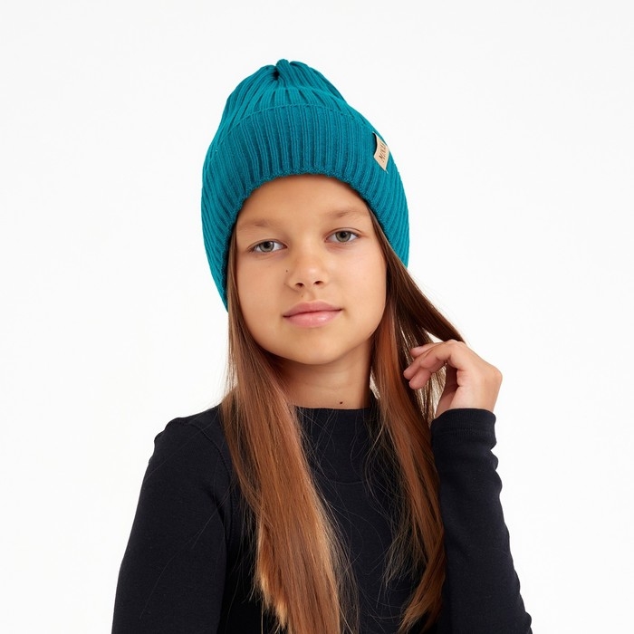 Шапка детская MINAKU с отворотом р-р 56-58, цв.морской волны