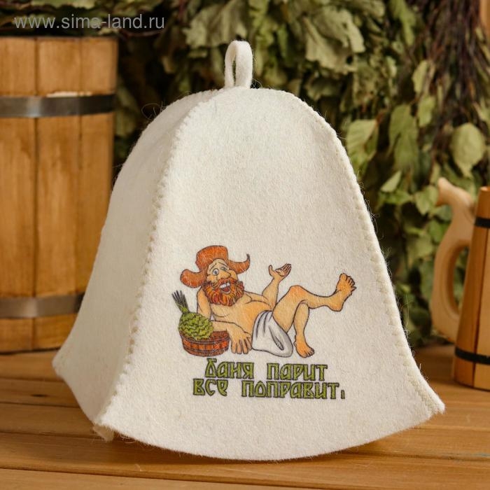Шапка для бани "Баня парит , все поправит" с принтом, белая
