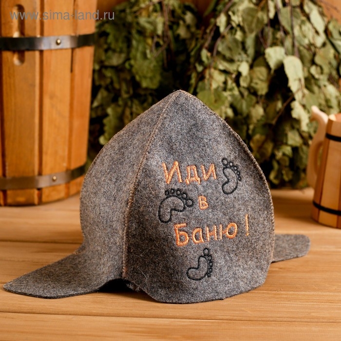 Шапка для бани "Будёновка. Иди в баню" войлок, коричневая