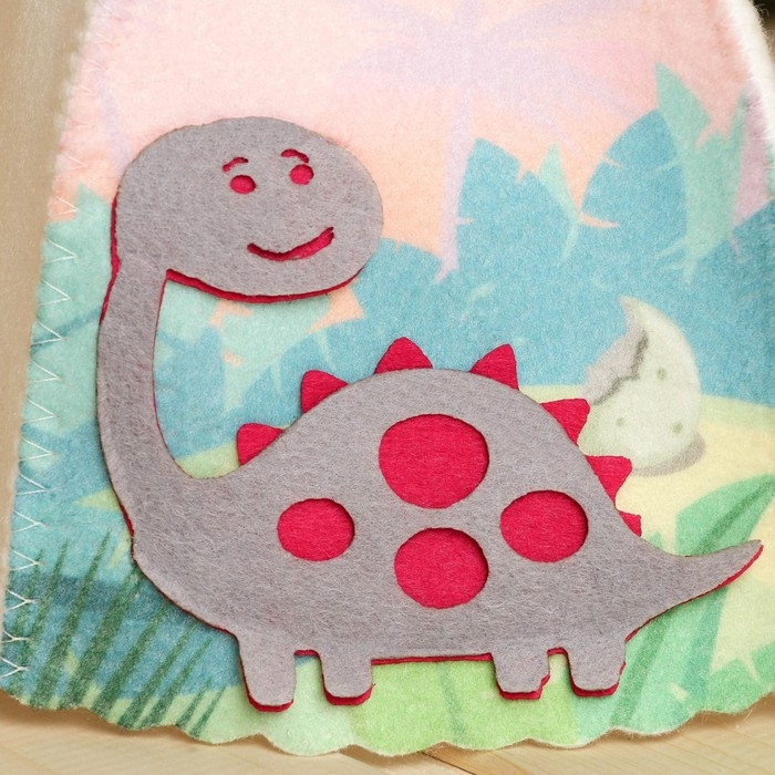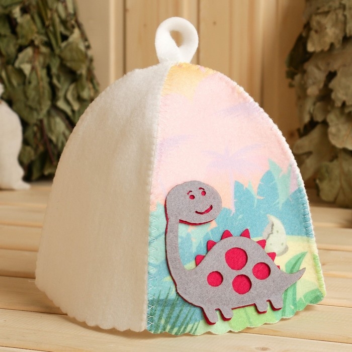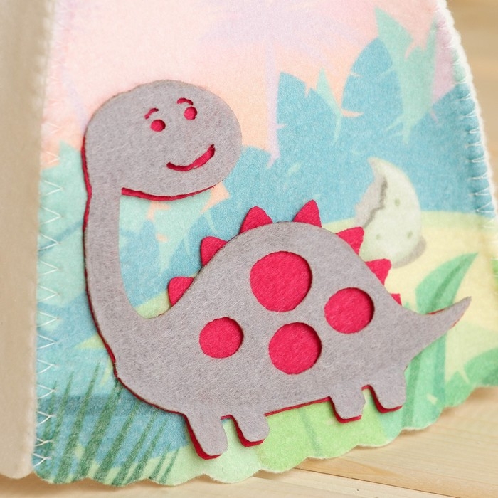 Шапка для бани детская с аппликацией динозавра "Дин", войлок