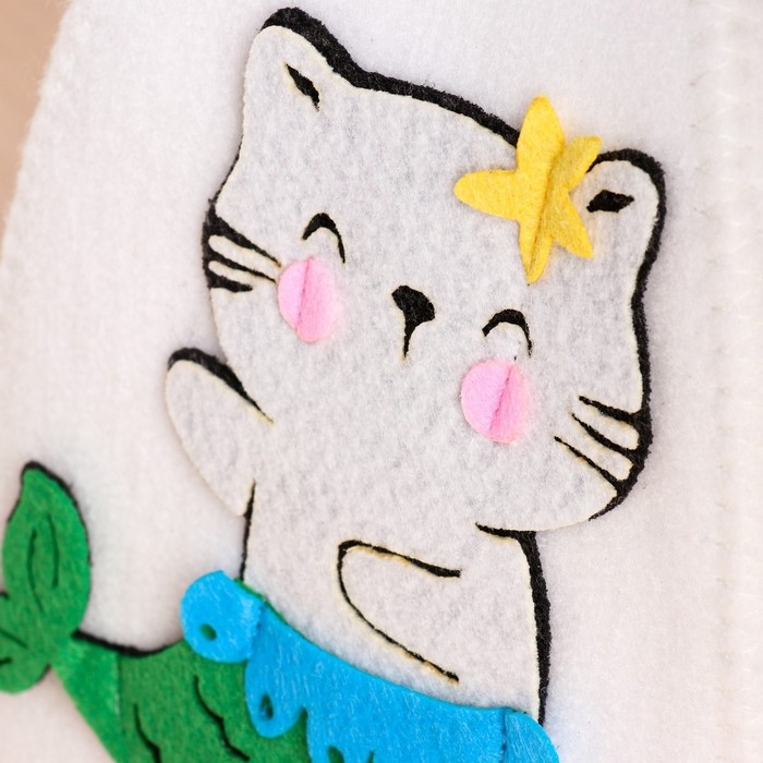 Шапка для бани с детской термопечатью "Панда" с ушками, войлок, 100% шерсть