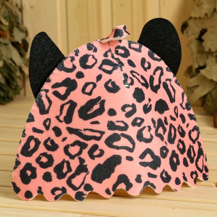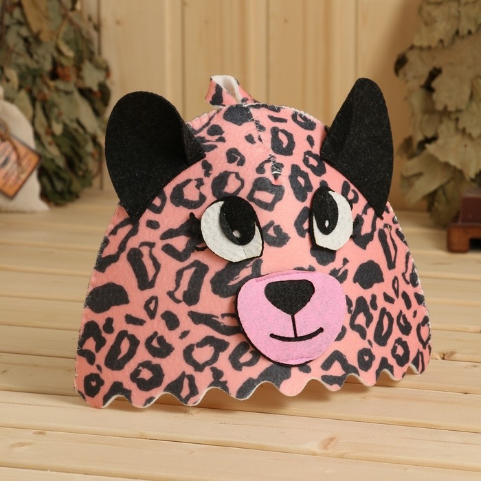 Шапка для бани с детской аппликацией "Розовый Леопард"