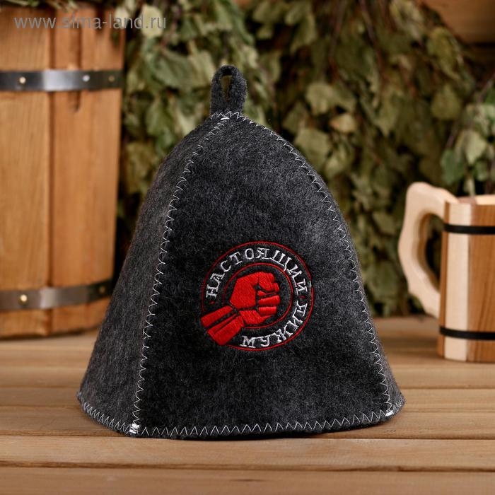 Шапка для бани с вышивкой "Настоящий мужик" кулак
