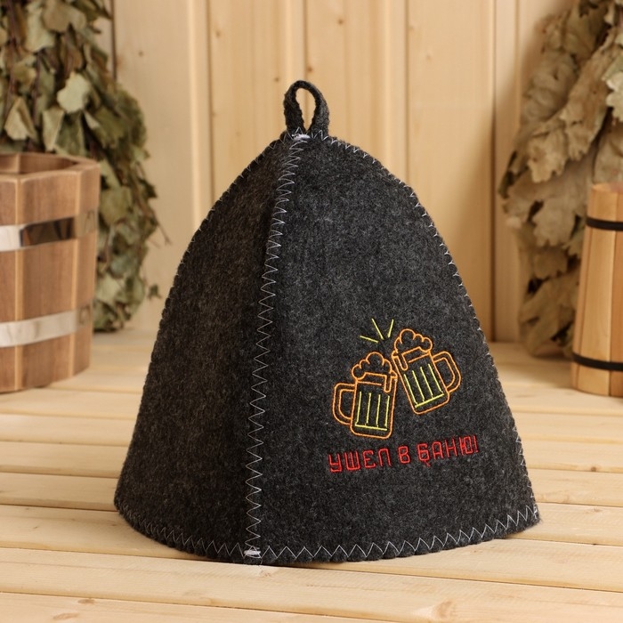 Шапка для бани с вышивкой "Ушел в баню", серая, фасовка 5шт
