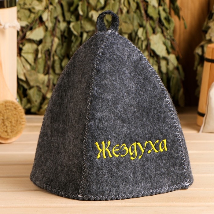 Шапка для бани с вышивкой "Жездуха" серая