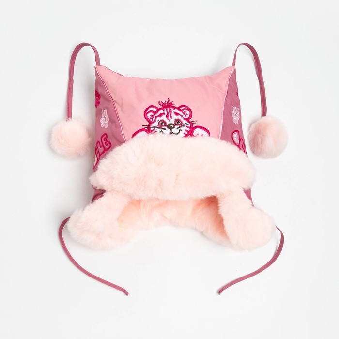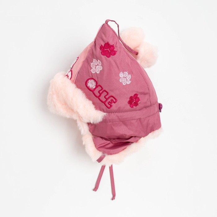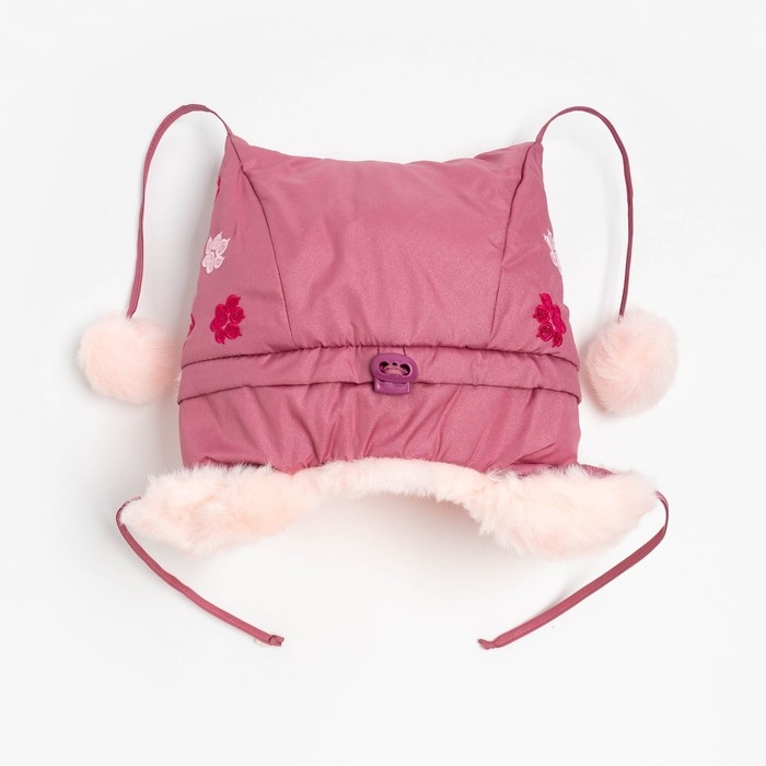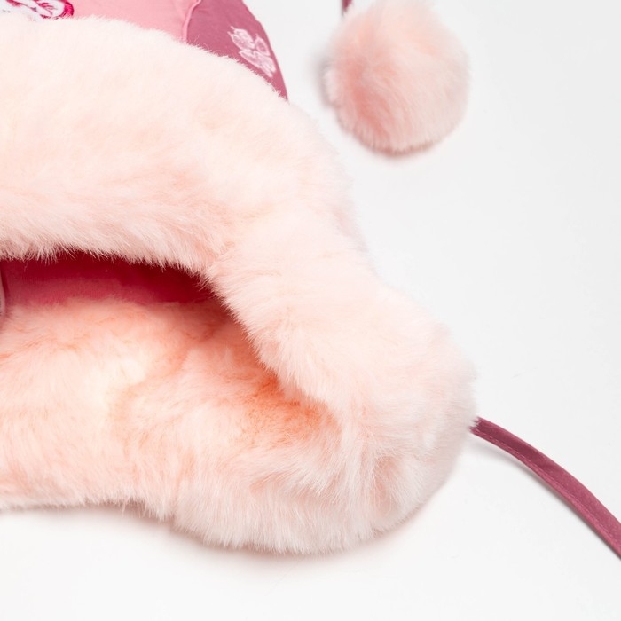 Шапка для девочки "Бом с вышивкой" , цвет брусника/светло-розовый, размер 48