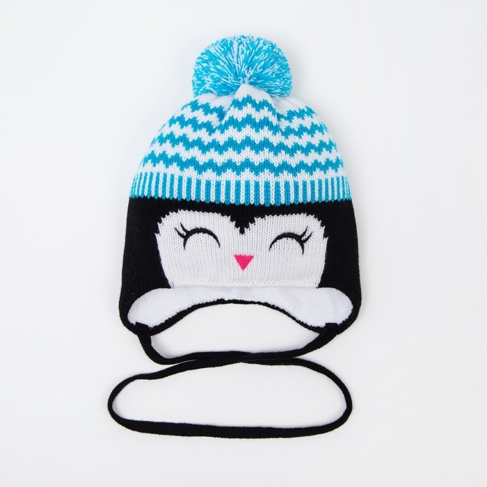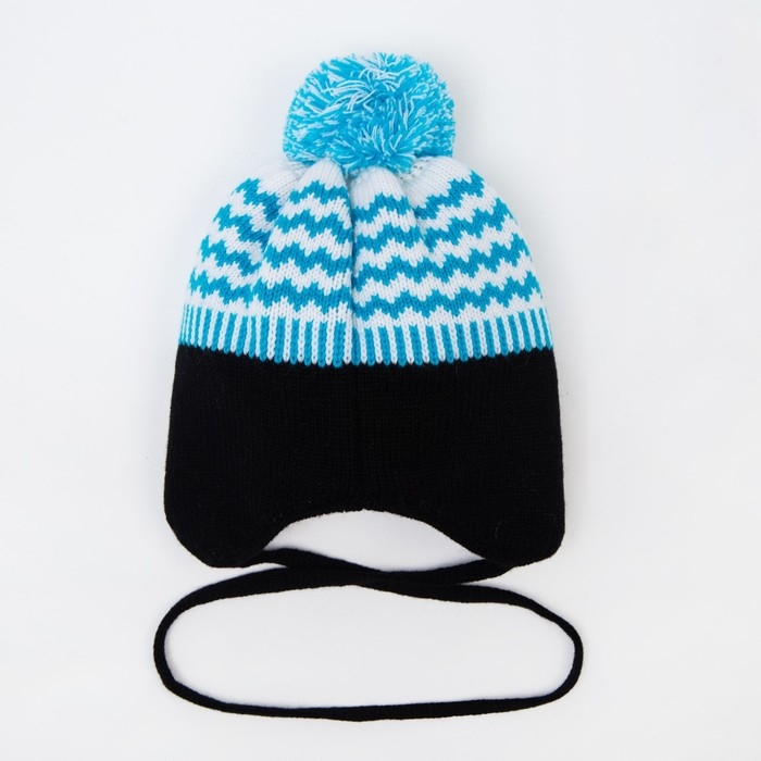 Шапка для девочки, цвет чёрный/голубой , размер 48-50