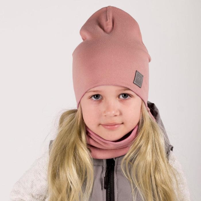Шапка для девочки, цвет пудра, размер 54-58