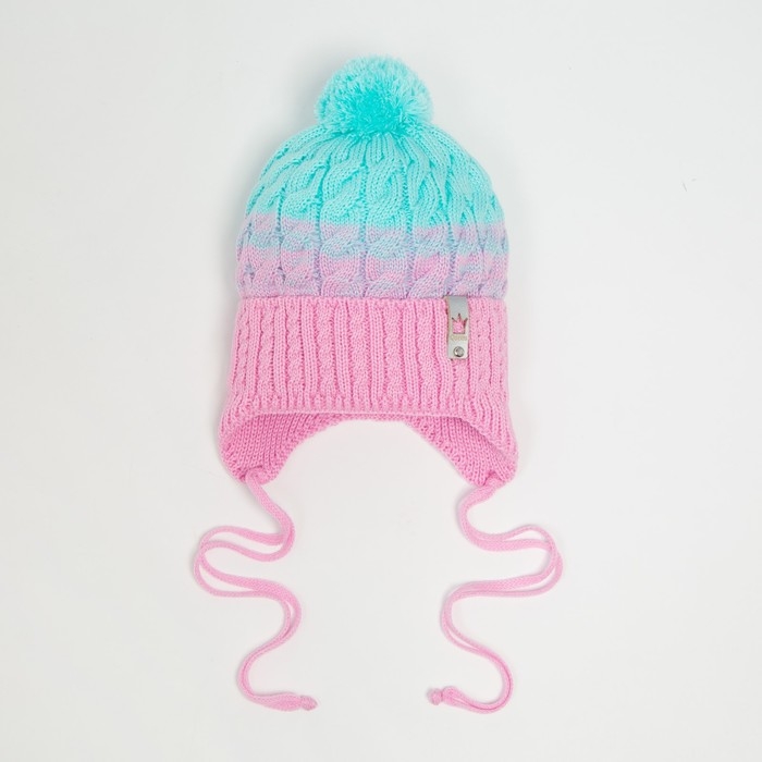 Шапка для девочки, цвет розовый/голубой, размер 44-47 см