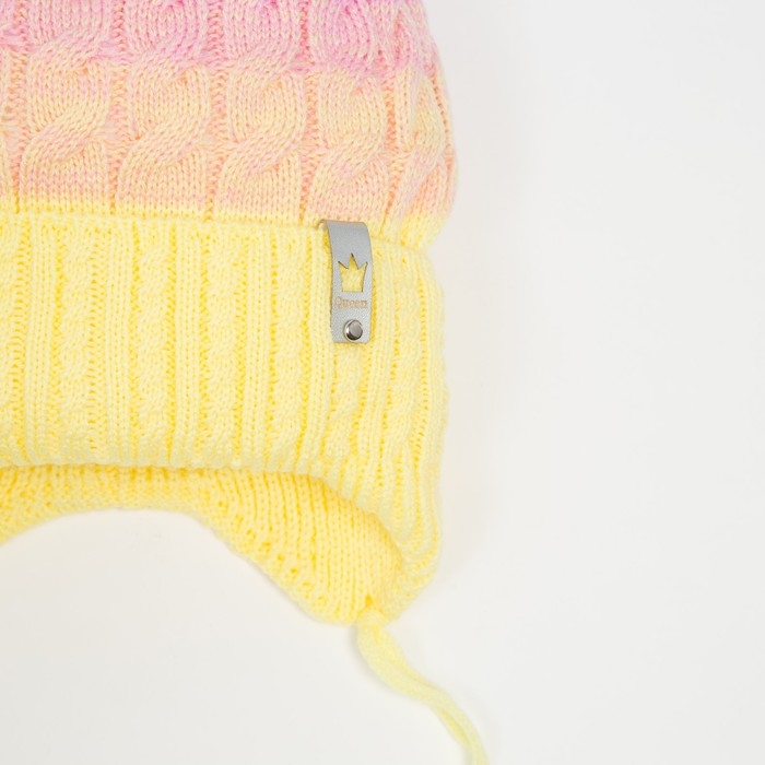 Шапка для девочки, цвет розовый/желтый, размер 53-56 см