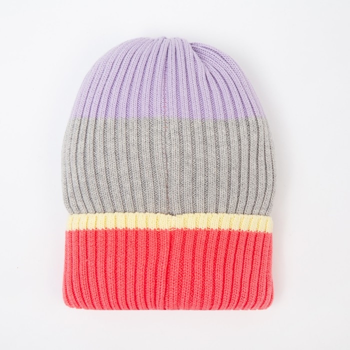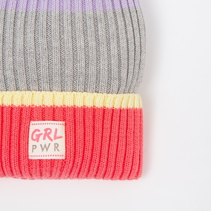 Шапка для девочки, цвет серый/коралловый, размер 52-54