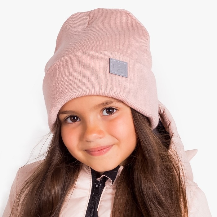 Шапка для девочки двухслойная , цвет пудра, размер 46-50