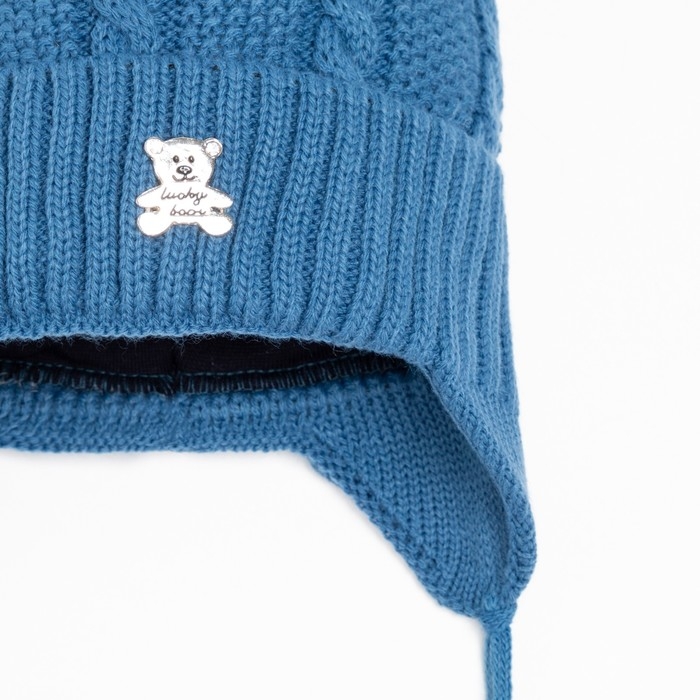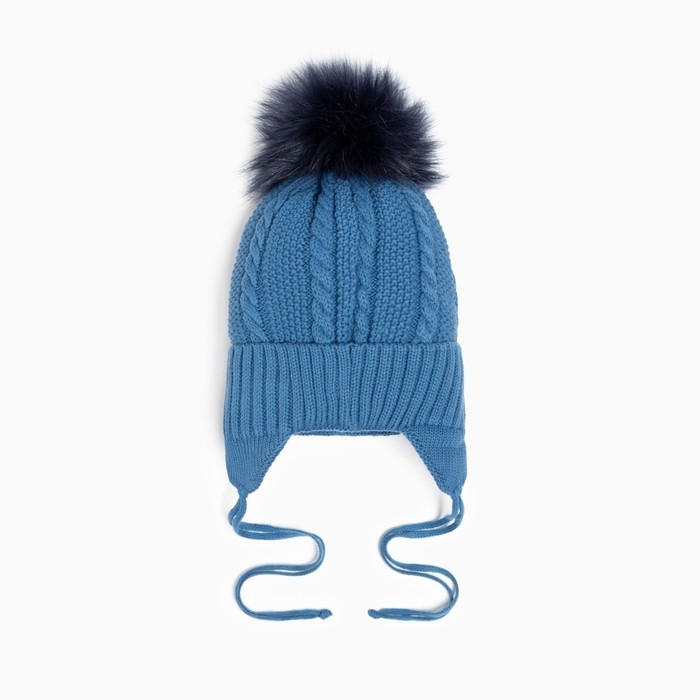 Шапка для девочки вязаная, цвет синий, размер 44-47 см (9-18 мес.)
