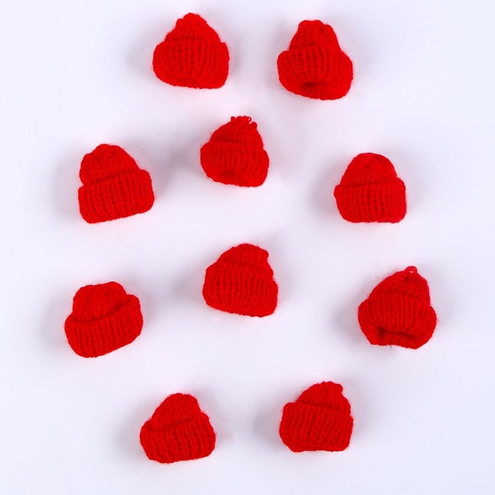 Шапка для игрушек вязаная, набор 10 шт., цвет красный
