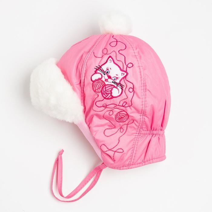 Шапка «Китти» для девочки, цвет розовый, размер 44