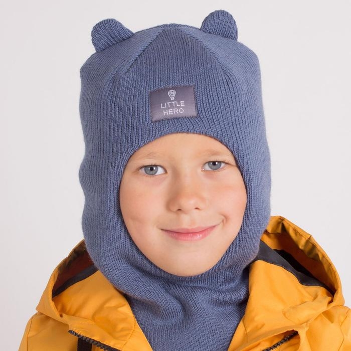 Шапка-шлем для мальчика, цвет индиго, размер 46-50