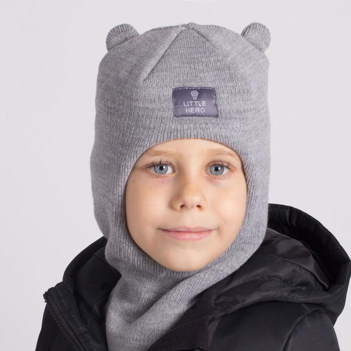 Шапка-шлем для мальчика, цвет серый, размер 46-50