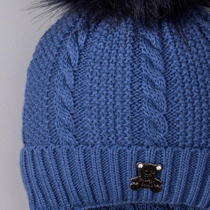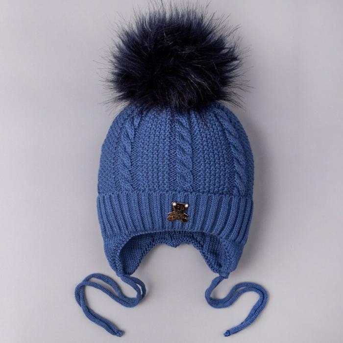 Шапка вязаная детская, цвет синий, размер 35-38см (1-3 мес.)
