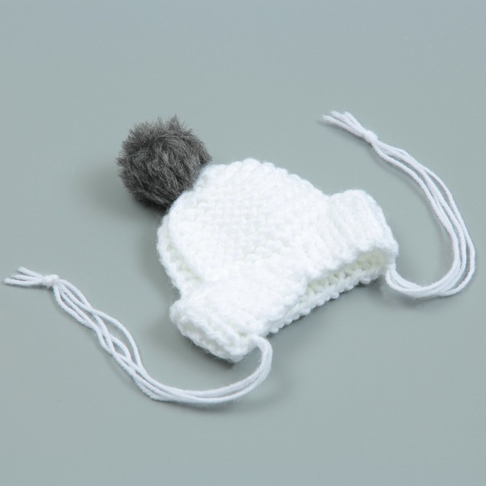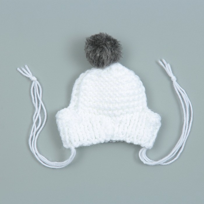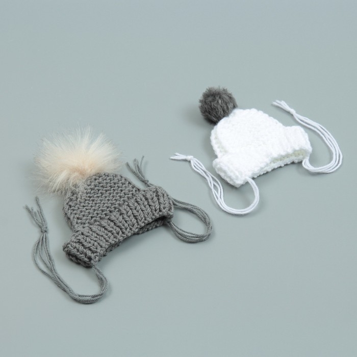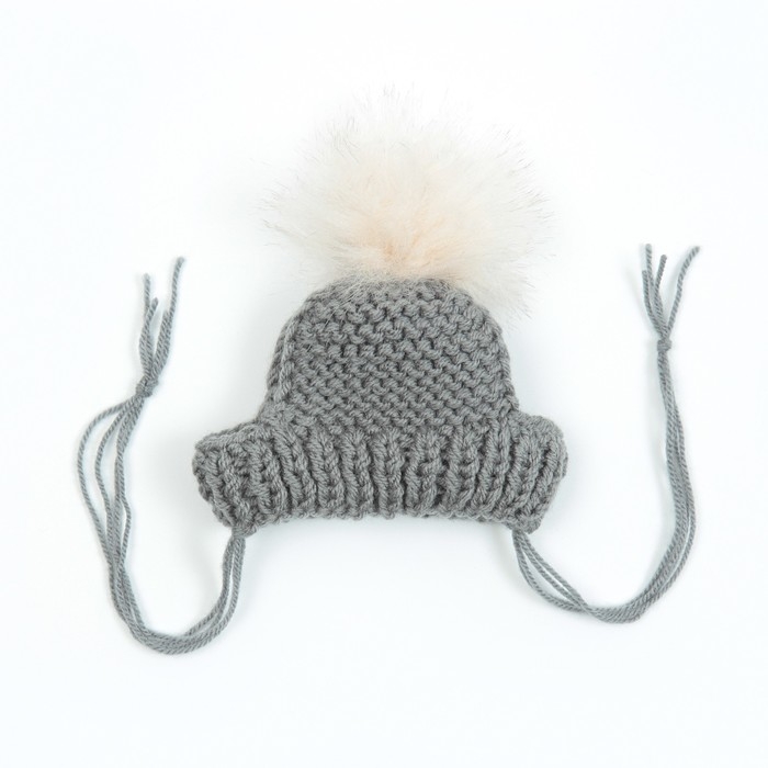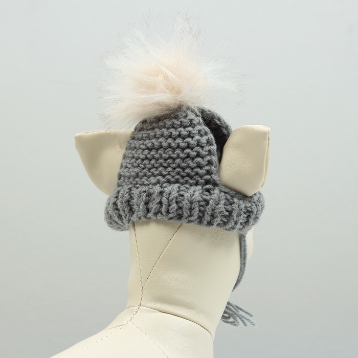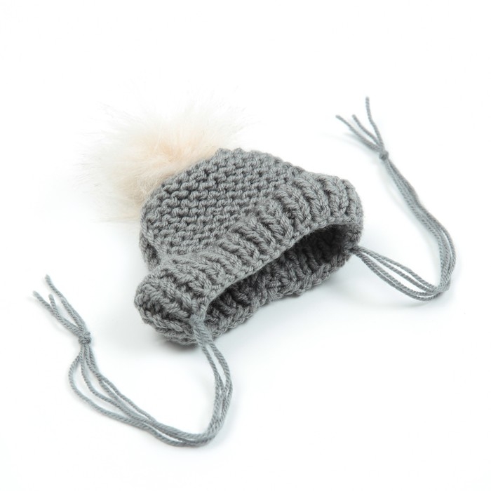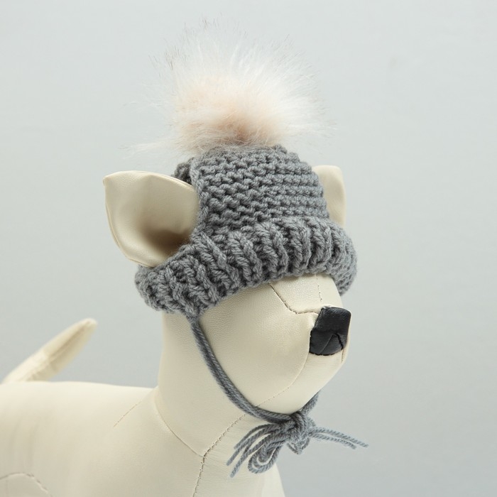 Шапка вязаная для собак, с помпоном, XS-S (объем головы 22 см, высота 7,5 см), микс