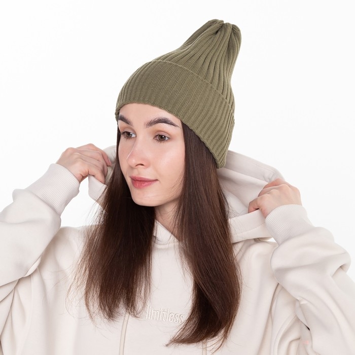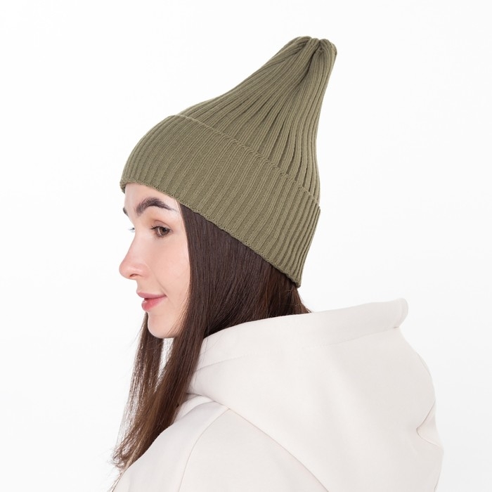 Шапка женская демисезонная, цвет хаки, размер 56-58