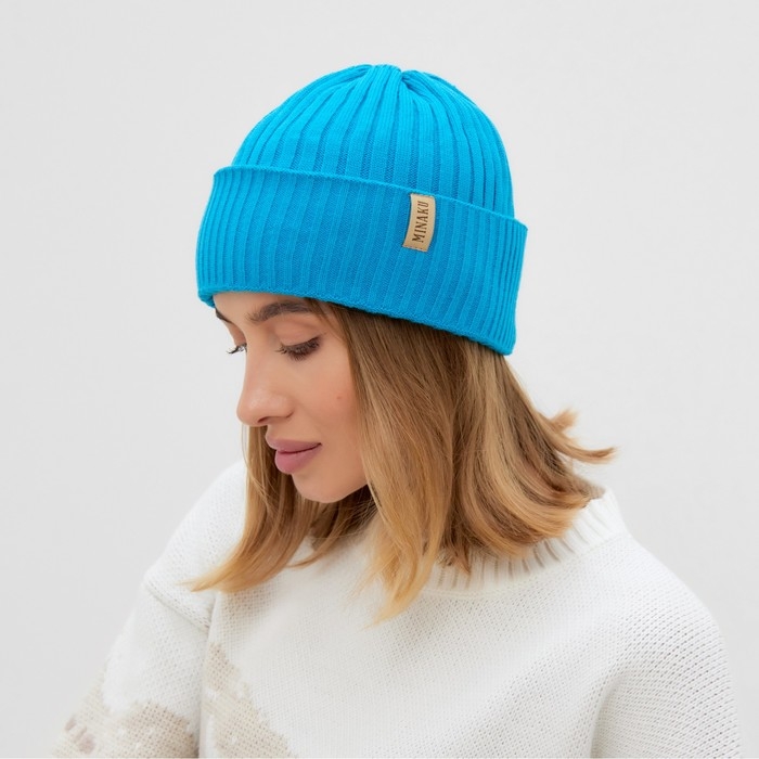 Шапка женская MINAKU "Бини" цвет бирюза, размер 56-58