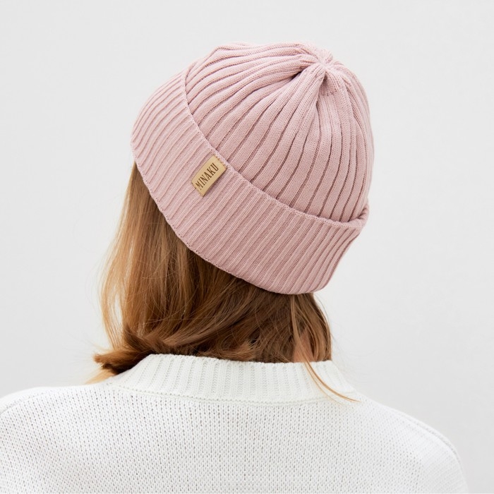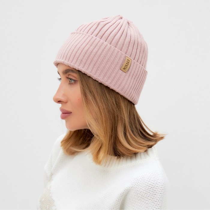 Шапка женская MINAKU "Бини" цвет пудра, размер 54-56