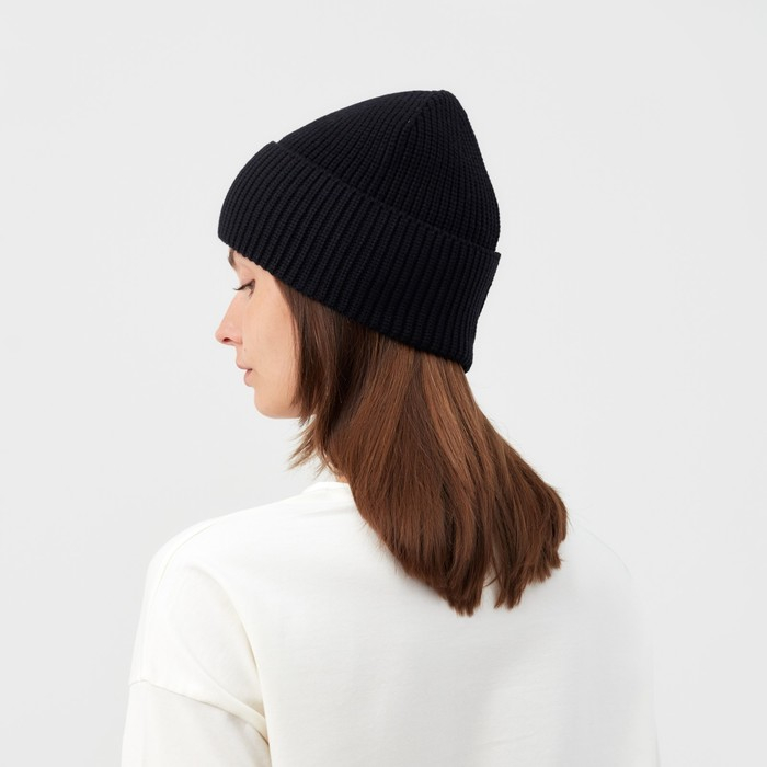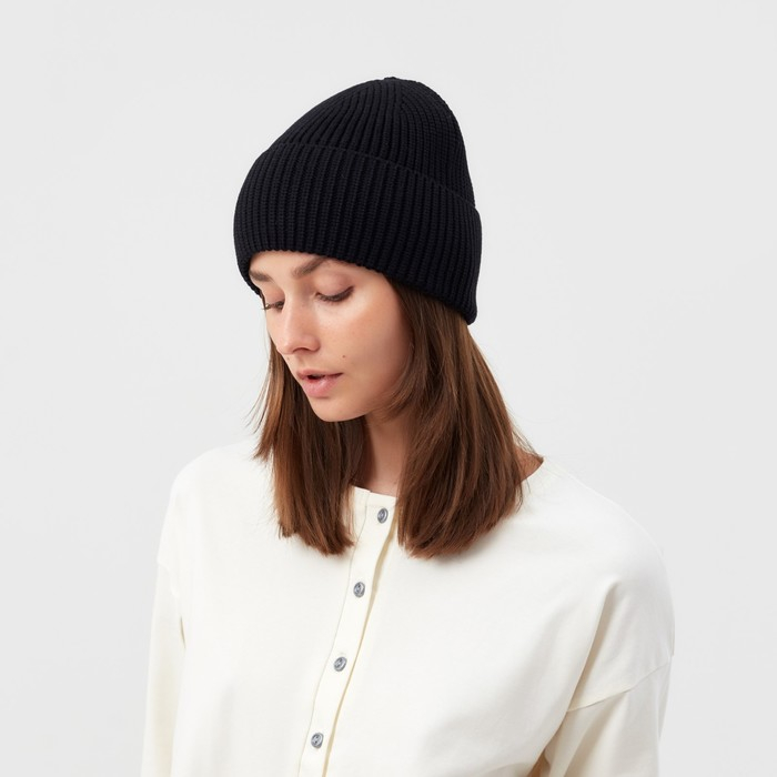 Шапка женская MINAKU с отворотом, размер 54-56, цвет черный