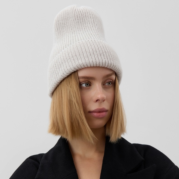 Шапка женская MINAKU с отворотом, размер 54-56, цвет серый