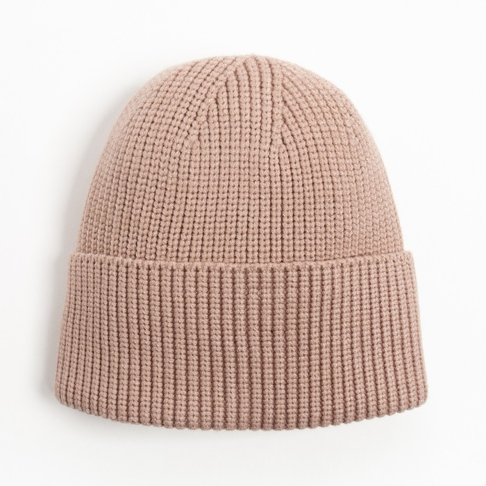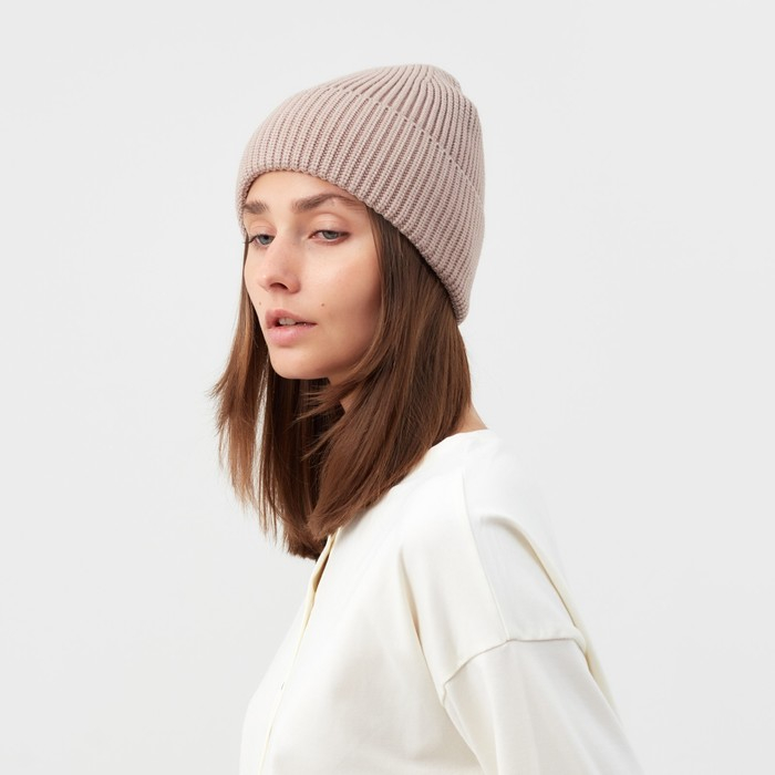 Шапка женская MINAKU с подворотом, размер 54-56, цвет бежевый