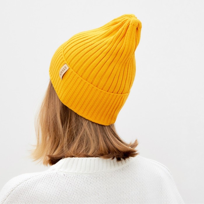 Шапка женская MINAKU "Трюфель" цвет горчица, размер 54-56